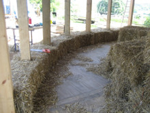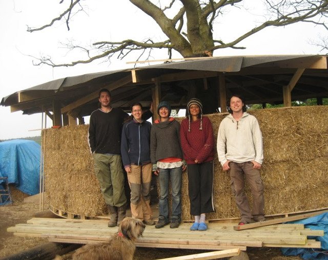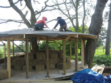 Takže, čo sa tu vlastne udialo za tých prár dní? Lea si roztrhla a zašila nohavice. =) Ja mám konečne vypraté. Teda mám, lebo Lea, ako sa stále ukazuje, je úplne perfektná žena. =) .. Praktická, ochotná, musím absolútne súhlasiť, že je šikovná a teda mi zobrala ruksak plný špinavého prádla, keď išla na Reggae party v Brackley a vrátila sa s čistým. =) Dík.. =) Stavbu dokončíme podľa plánu. Strecha bude vo vodeodolnom stave a balíky budú na mieste. Na teraz je konečne strecha celá pokrytá preglejkovou prvou vrstvou, ktorá ponesie vodoizolačnú asfaltovú vrstvu. Tú musíme ešte zajtra dokončiť a potom hor sa na balíky. =) Chceme stihnúť postaviť steny až do výšky štyroch vrstiev. Namiesto piatej vrstvy balíkov bude po celom obvode umiestnené súvislé okno.